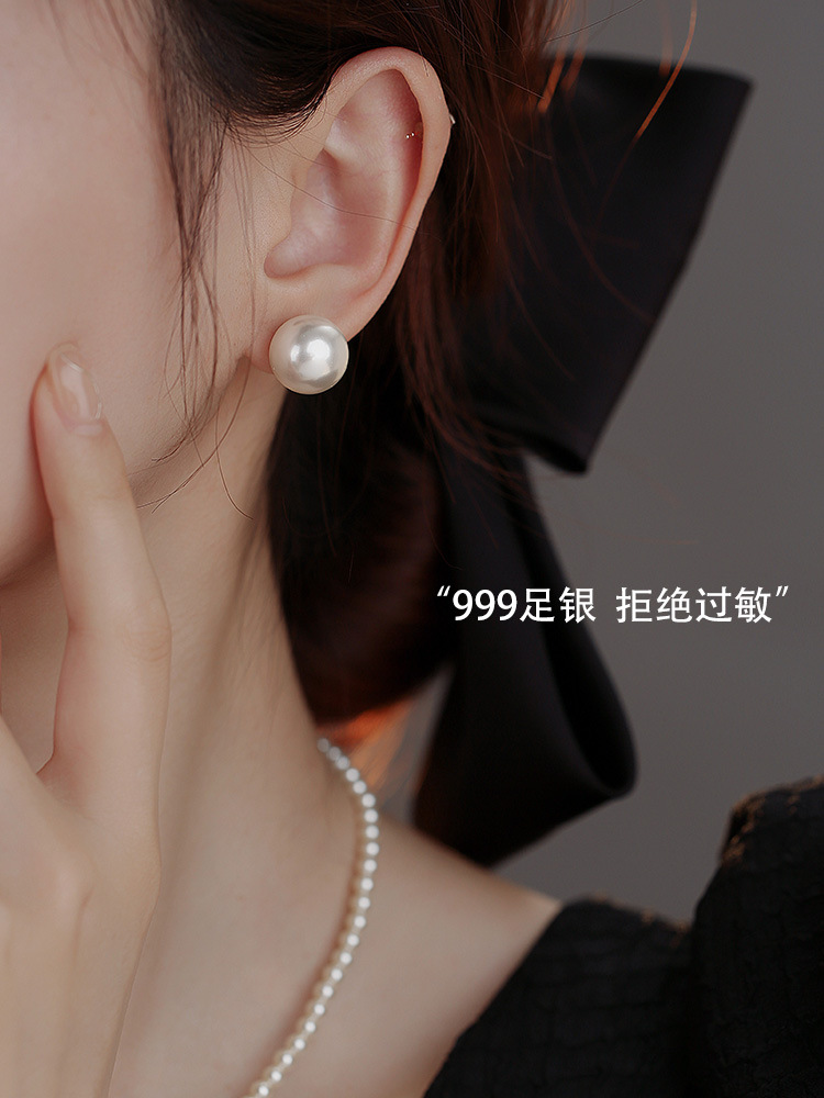 999純銀銀針施家真珠ピアス女性気質耳クリップ大真珠イヤリング2024新型爆金イヤリング