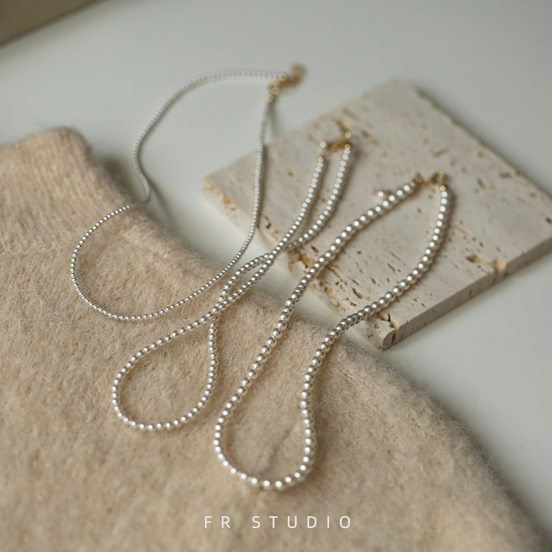 よく売れている韓国のブロガーは同じタイプの輸入施家の小さい真珠のネックレスの女性の長い極めて細い米の玉の首のチェーンの女性の金の2024