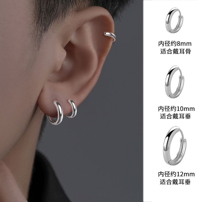 人気99足銀イヤリング男性潮気質小衆男性耳骨釘シングル耳ボタン純銀耳輪素輪