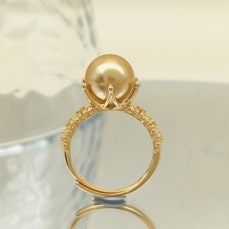 真円形の母貝真珠リング ティーゴールドカラー S925純銀製 オープンフィットリング クラシックな六爪デザイン 女性用