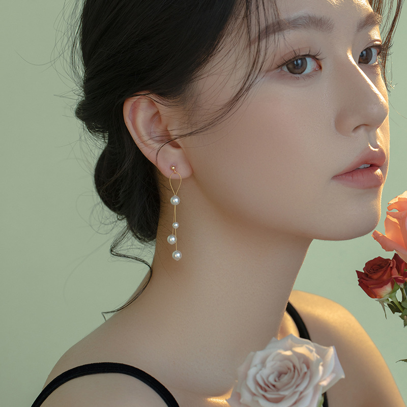 午後の酒会用ロングタッセルパールイヤリング 女性向け ニッチデザイン 高級感 イヤリング ピアス 2025年
