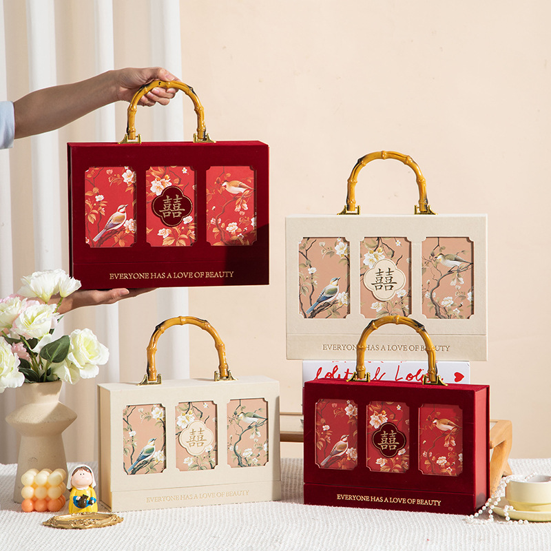 新しい手提げ革化粧箱ギフトボックス結婚祝いお返しギフトボックス空箱高級喜糖箱卸売り赤