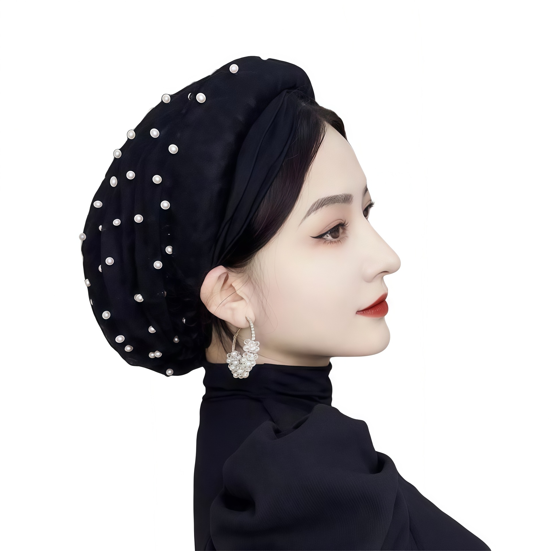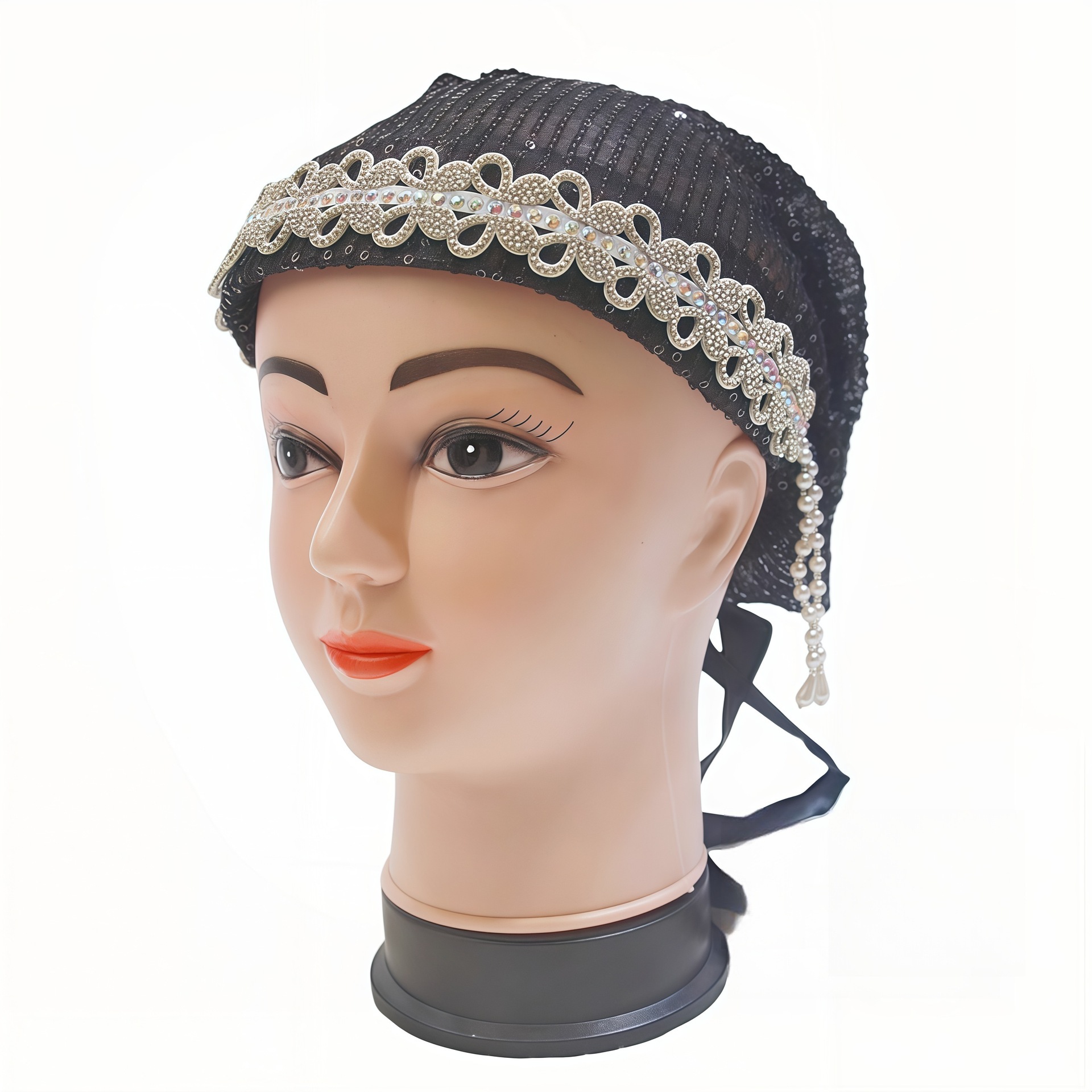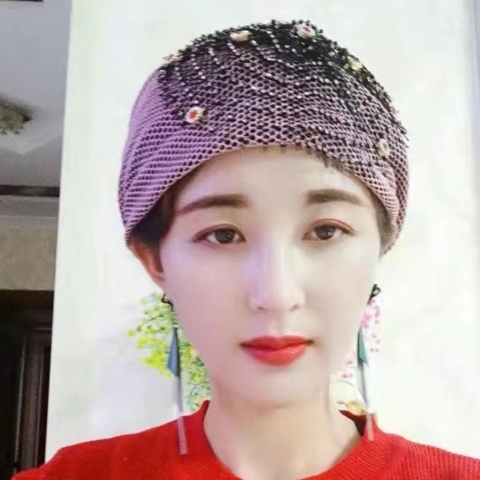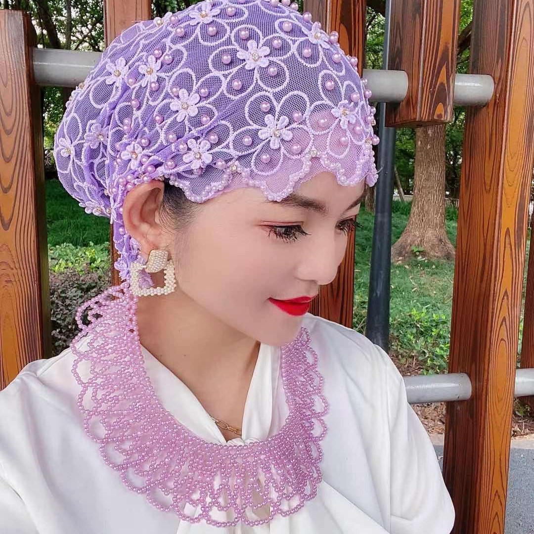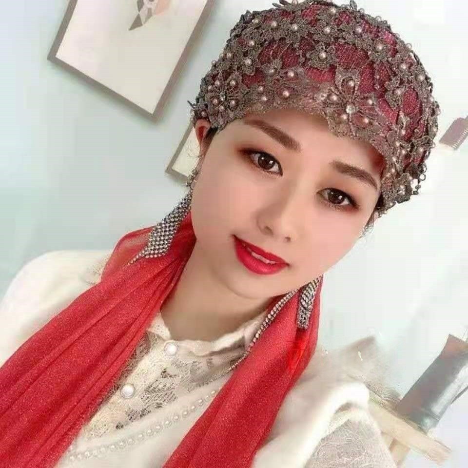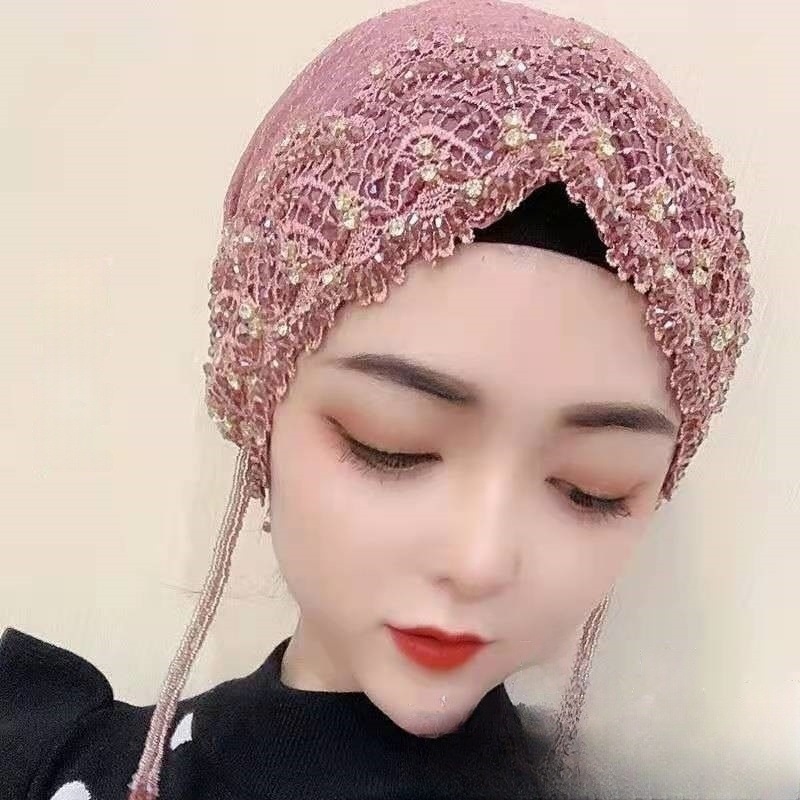 新しいビーズヘアフープ帽子、回族女性のファッショナブルな薄い通気性のあるヘアピン帽子、インターネット有名人の同じスタイルのレース包頭帽子、ヘアエクステンション