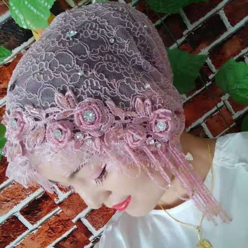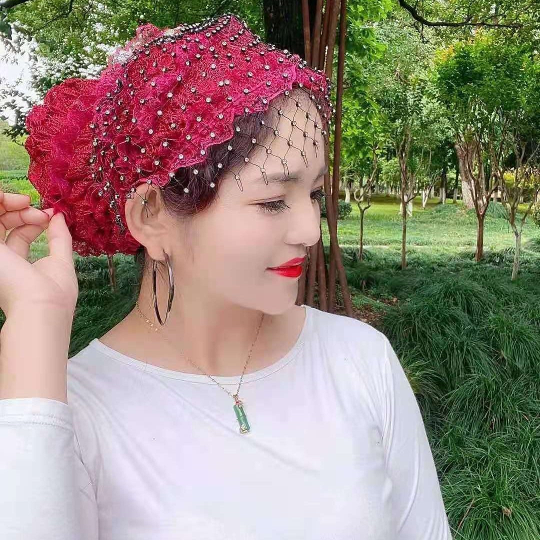 女性の包頭帽子春と夏の新しいスクエアダンス帽子カジュアル帽子ビーズレース帽子ママ帽子ヘアカバープルオーバー