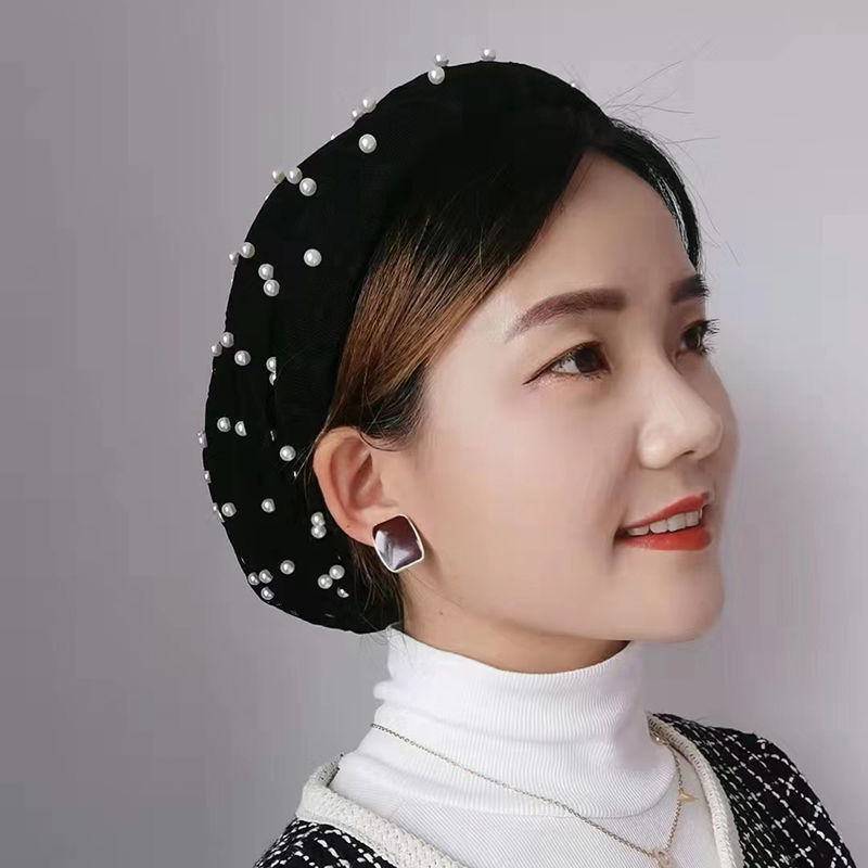 女性用の新しいビーズヘッドバンド帽子、ファッショナブルな薄い通気性のあるヘアピン帽子、エスニックレースのつば帽子、ヘアエクステンション