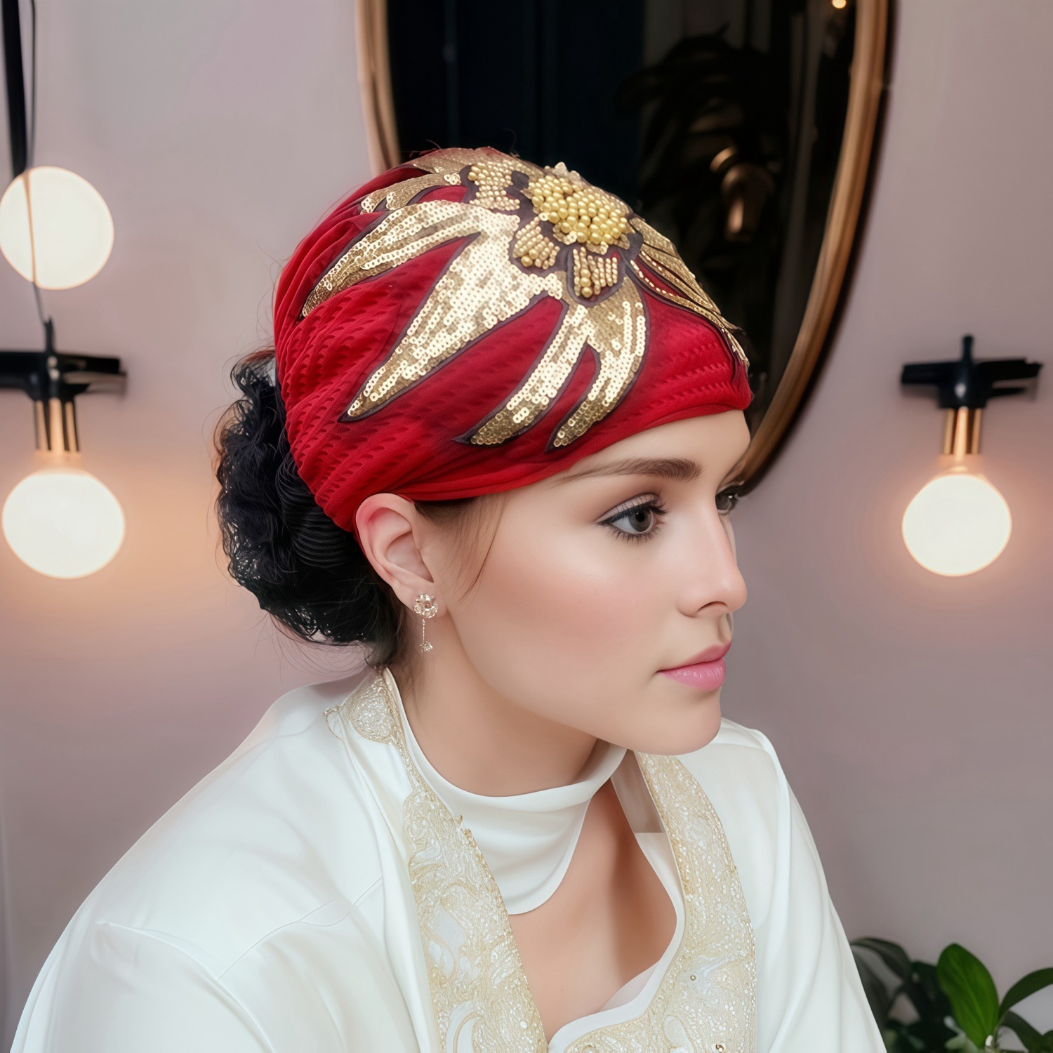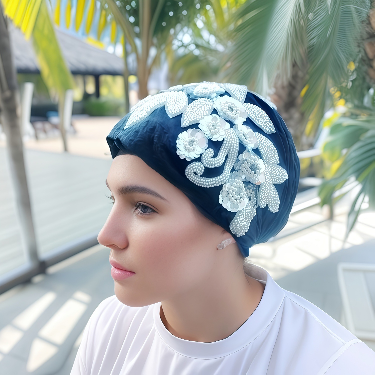 ヘアピンキャップ、ヘアフープキャップ、おしゃれでスタイリッシュな帽子、新しいホットスタンピングフラワーパッチハット、ヒジャブ、パイルハット、カジュアルスタイル