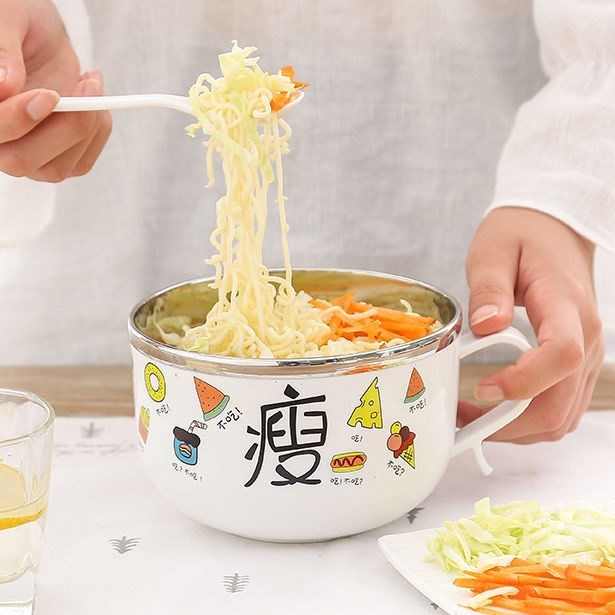 ステンレス鋼インスタントラーメンボウル蓋付き学生寮大きなスープボウルホームクリエイティブ日本の弁当箱漫画かわいい弁当箱