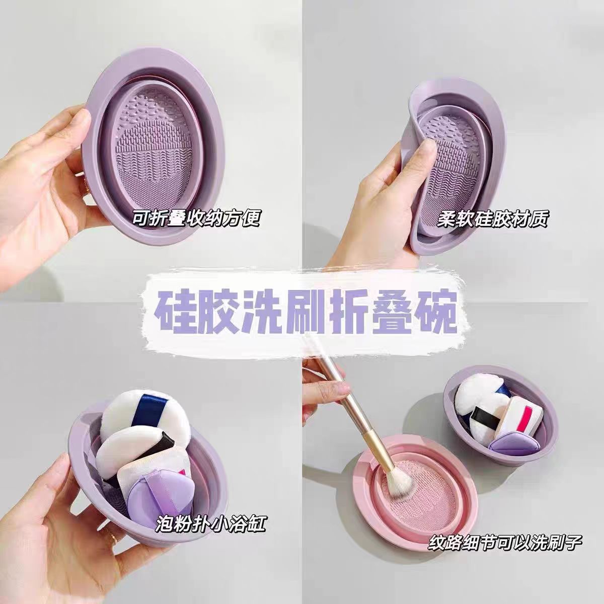 シリコン製折りたたみ式洗浄ボウル、化粧ブラシ洗浄セット、パフ、ビューティーエッグツール洗浄器、毛を傷めない洗浄