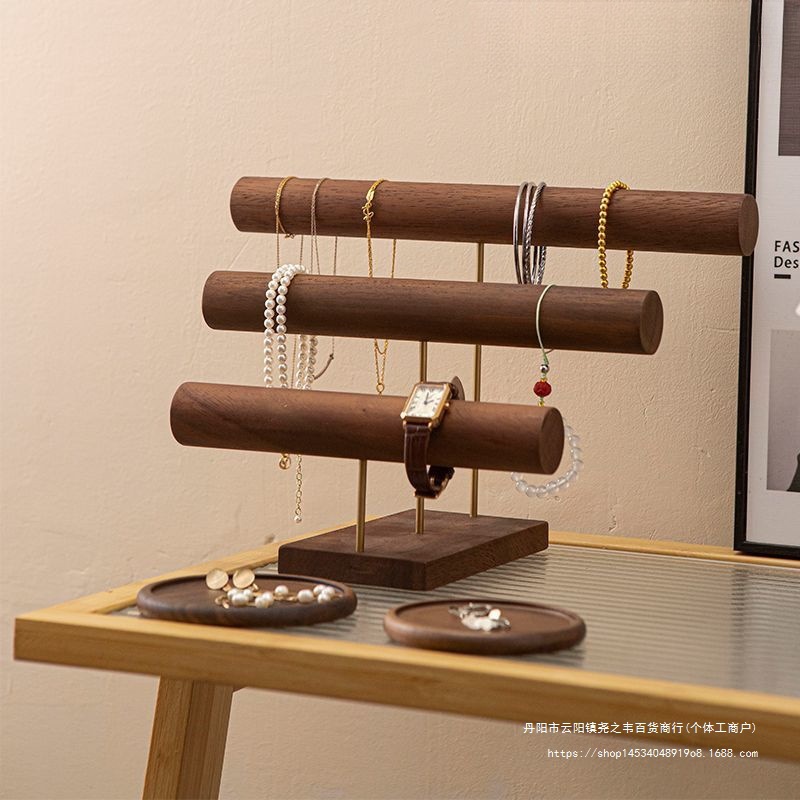 ジュエリーディスプレイラッククルミレトロ二層ブレスレットラックカウンターネックレスブレスレットディスプレイ収納ラック小道具装飾品