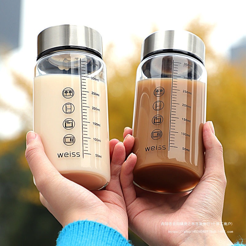 朝食カップ 蓋付き スプーン スケール ミルクカップ コーヒー 高温耐性 家庭用飲料水 ガラスカップ 女子学生用加熱可能