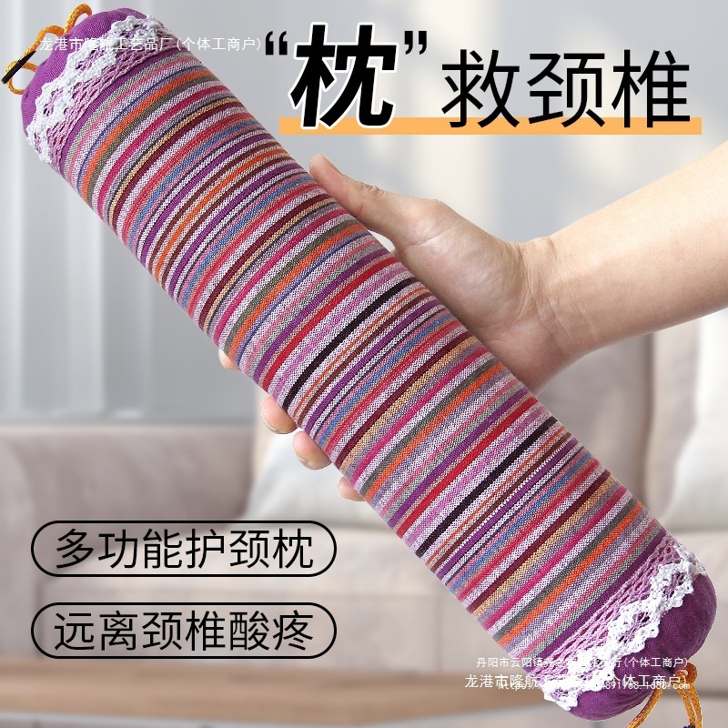 頸椎枕、そば殻丸枕、丸い円筒形の首枕、睡眠用ハードネックプロテクター、肌に優しく通気性のある一人用睡眠補助首枕