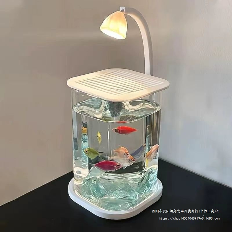 水槽とベタ用の特別な超白色小型怠惰なガラス水槽、リビングルームのクリエイティブなデスクトップ装飾品、ハイエンドの装飾ライト