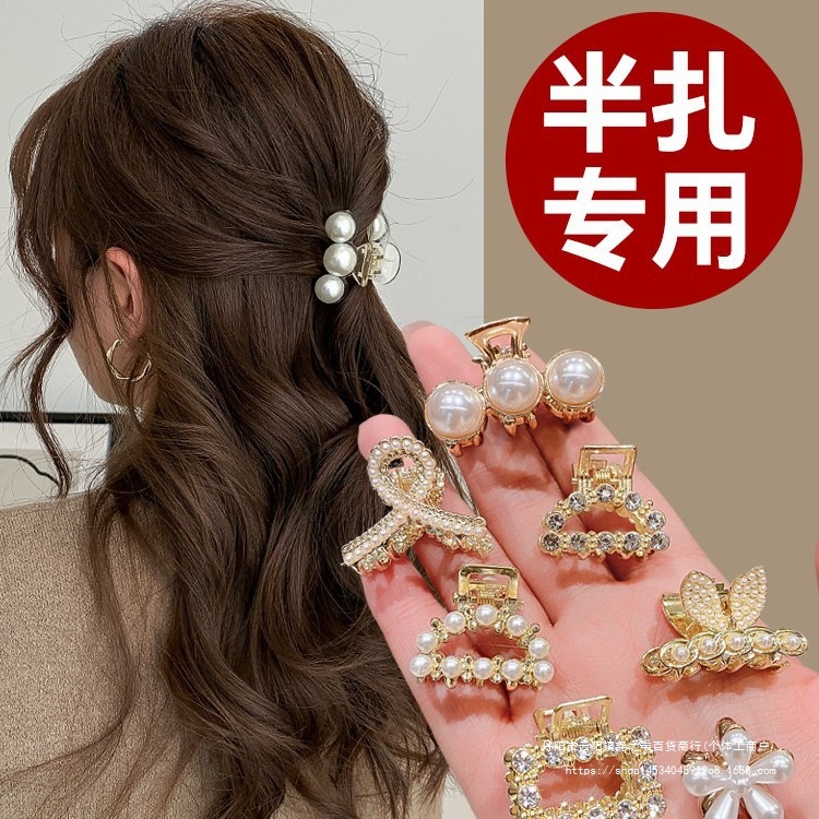 セクシーな小さなパールクリップ、女性用の小さなハーフタイヘアクリップ、2024年の新しい後頭部クリップヘッドドレス