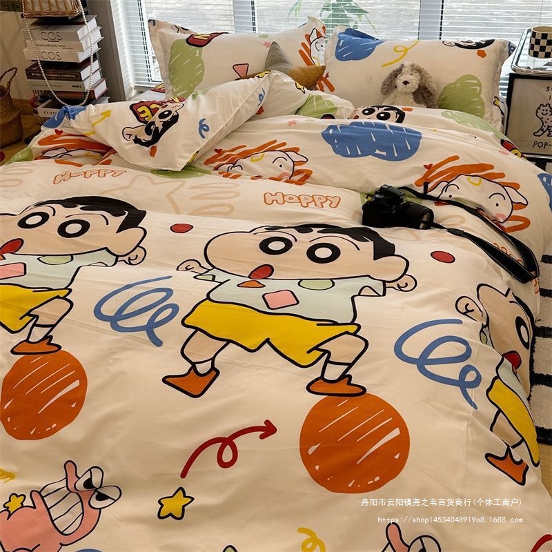 クレヨンしんちゃん かわいいベッドシーツ4点セット 洗える綿キルトカバー 学生寮3点セット 送料無料