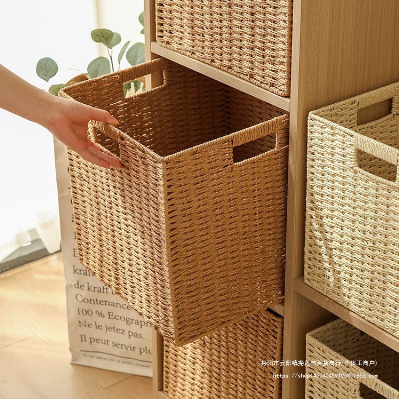 格子キャビネット収納バスケット Kalake キャビネット収納ボックス家庭用衣類スナック収納バスケット織物大型収納ボックス