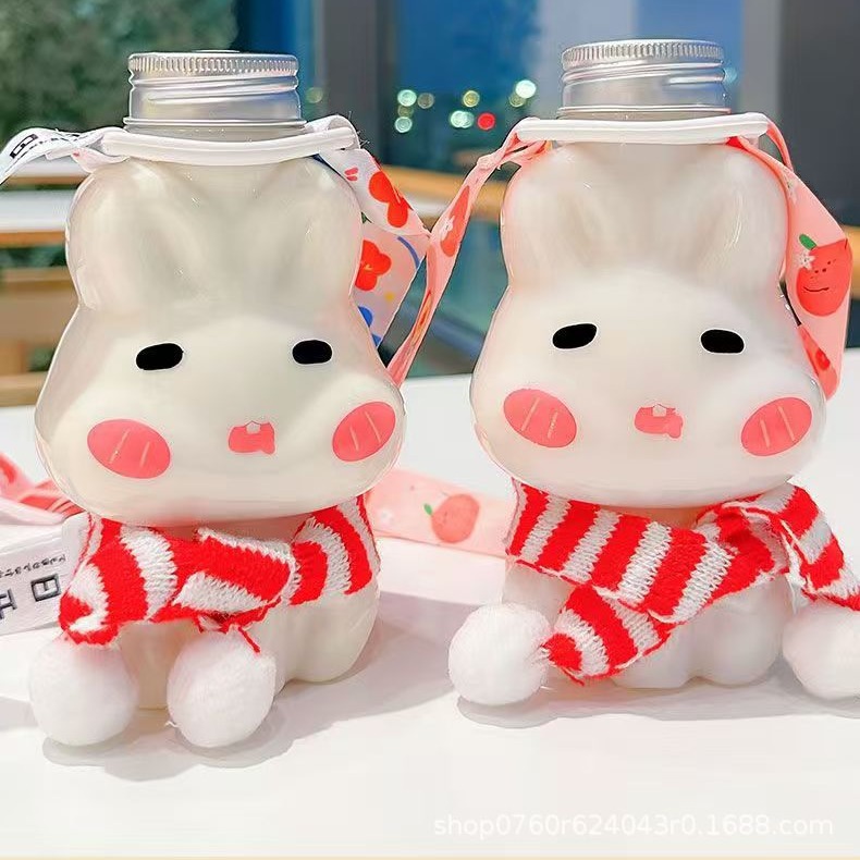 定制可爱猫咪奶茶瓶一次性饮料瓶500ml便携背带异型带盖塑料瓶