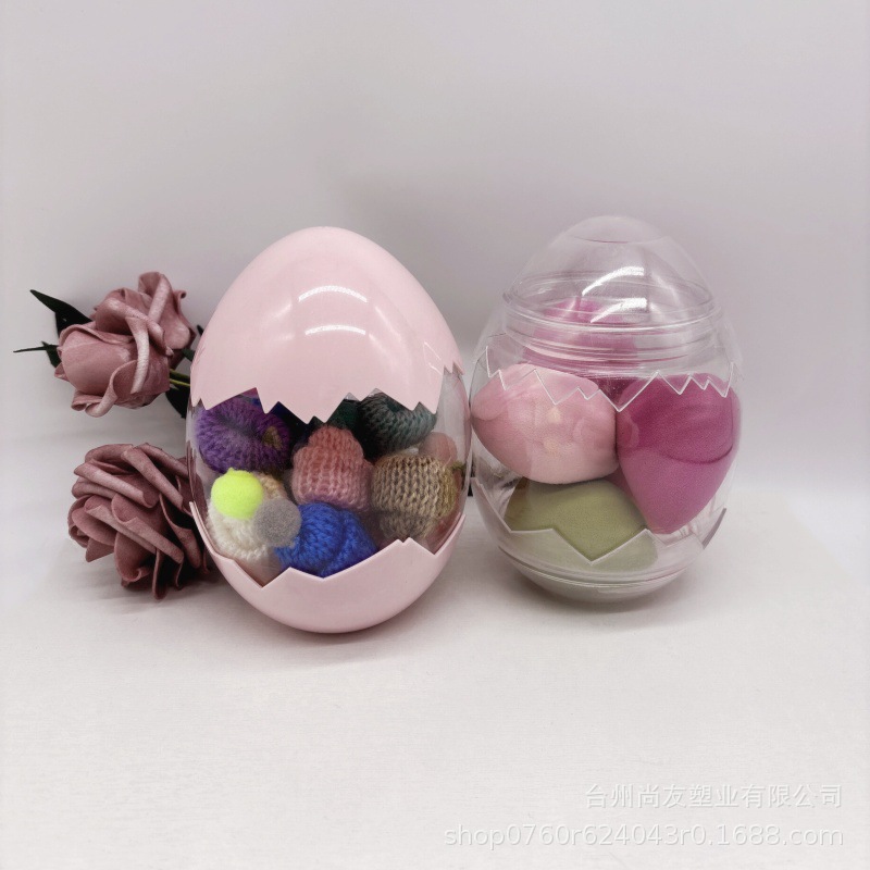 メーカーの新型ネットレッドの卵の殻のプラスチックの瓶の使い捨てのアイデアのひびの卵の殻の瓶のパフは瓶のキャンディーの瓶を収めます。
