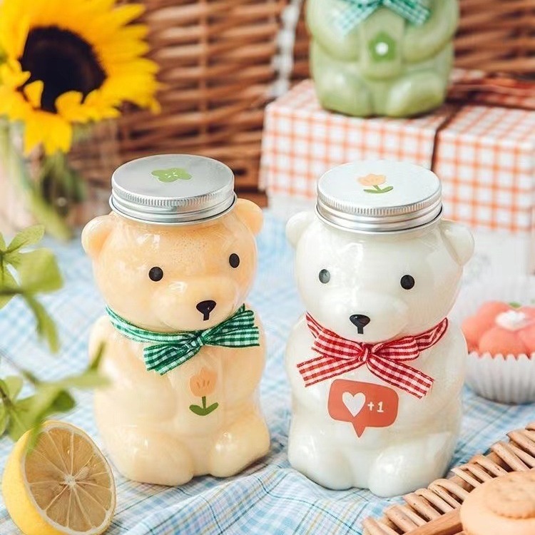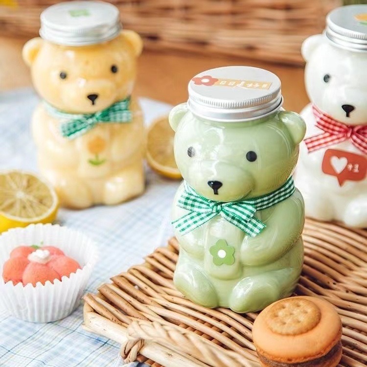 420mlの冷たい飲み物の哺乳瓶の高級なアイデアの熊の瓶の出前の飲み物の店の専用の瓶のデザートのビスケットの密封の缶