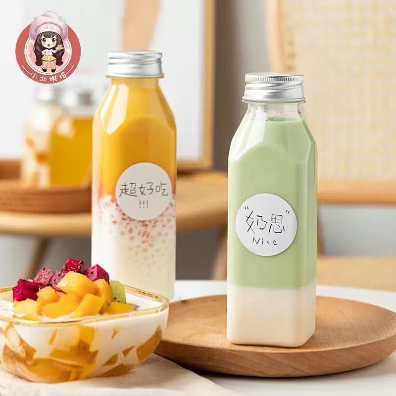新品350ml冷飲ミルクティージュースヨーグルトカップpet厚手使い捨て異形蓋付きペットボトル