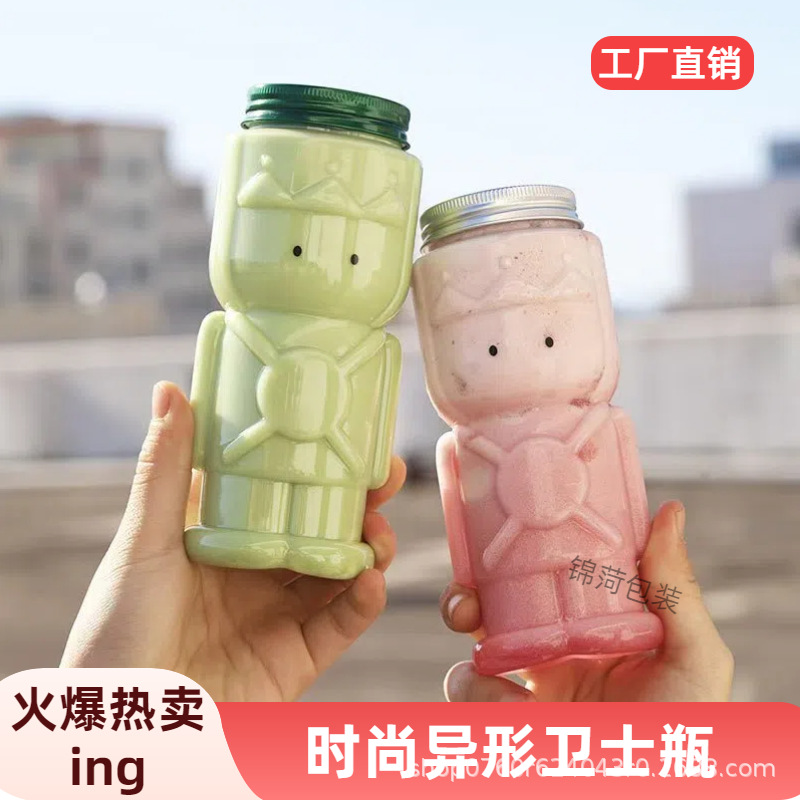 クリエイティブ使い捨てミルクティーボトル人形プラスチックボトル漫画ロボットミルクティーボトルネット赤ミルクティーカップ