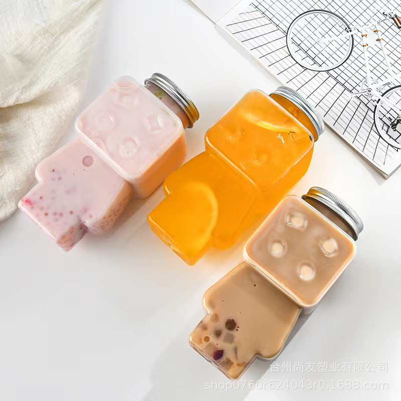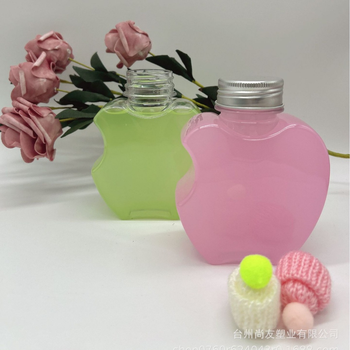 卸売りミルクティー瓶使い捨て異形リンゴ形蓋付きペットボトル飲料カップ300ml異形ミルクティー瓶