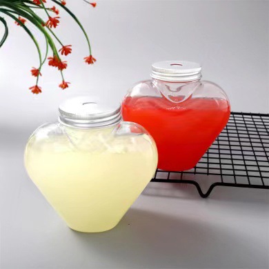 クリエイティブなハート型ドリンクボトル 450 ミリリットル透明 PET プラスチックボトル使い捨て水出し茶ボトルポータブルボトル