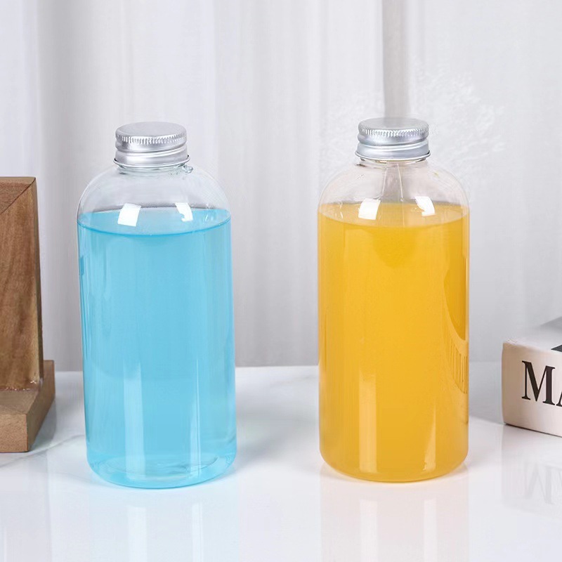 同じ種類のジュースの飲み物の瓶の透明なpetのプラスチックの瓶の使い捨ての哺乳瓶のアルミニウムの蓋の厚い透明な瓶を叫びます。