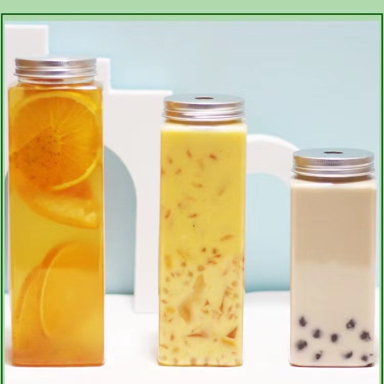 550ml角型哺乳瓶使い捨てプラスチック飲料瓶透明正方形ミルクティー飲料瓶冷泡カップ