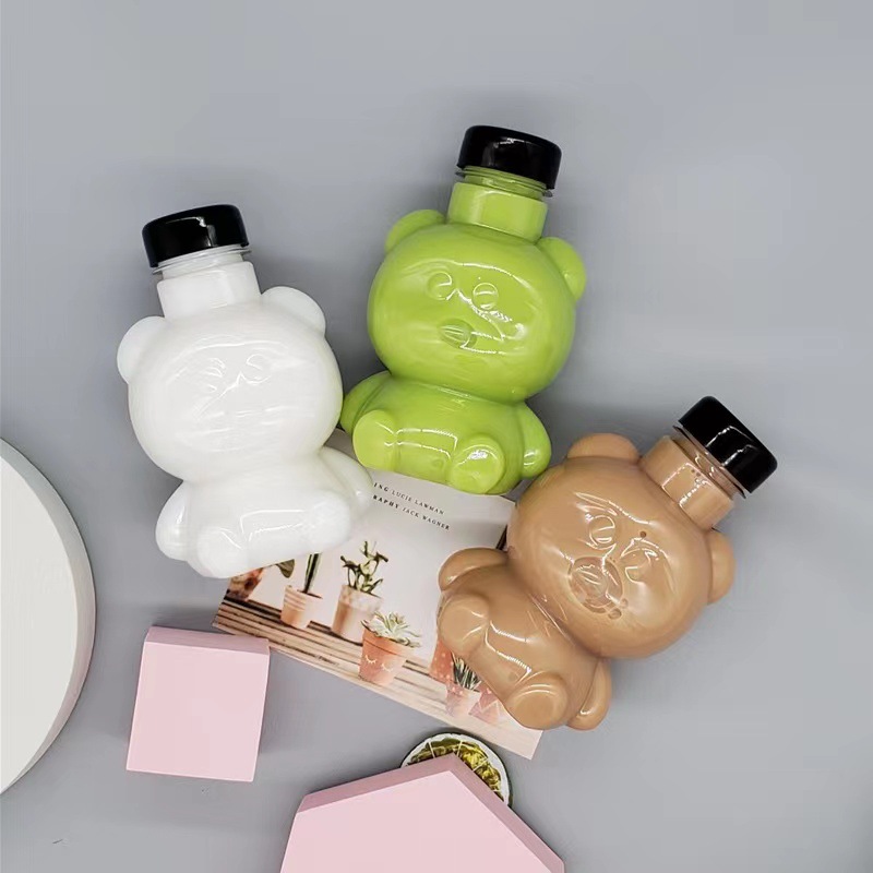 ネットレッド創意異形使い捨てミルクティーコップpetペットボトルクリスマスモデル熊ミルクティー瓶飲料缶