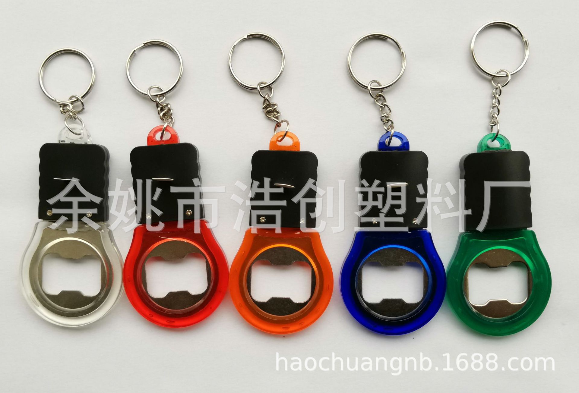 電球形状栓抜きledランプキーホルダープラスチックミニキーホルダー絶縁シート付き販促プレゼント