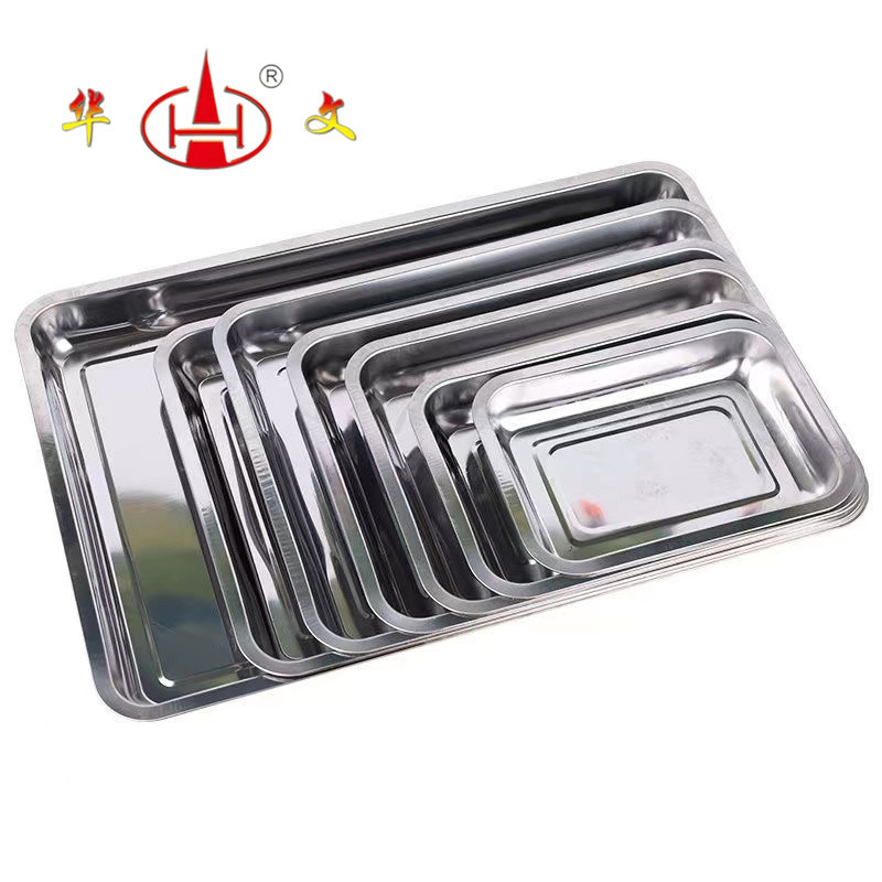 ステンレス304角皿家庭用キッチントレイ長方形鉄皿深さ浅厚タイプ食堂蒸しご飯焼き皿茶皿