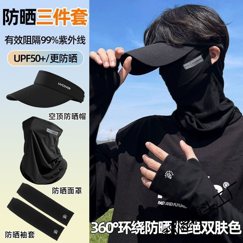 アイスシルクサイクリング日焼け止めマスクメンズ抗UV登山フルフェイスベールメンズアイススリーブ日焼け止め帽子セット