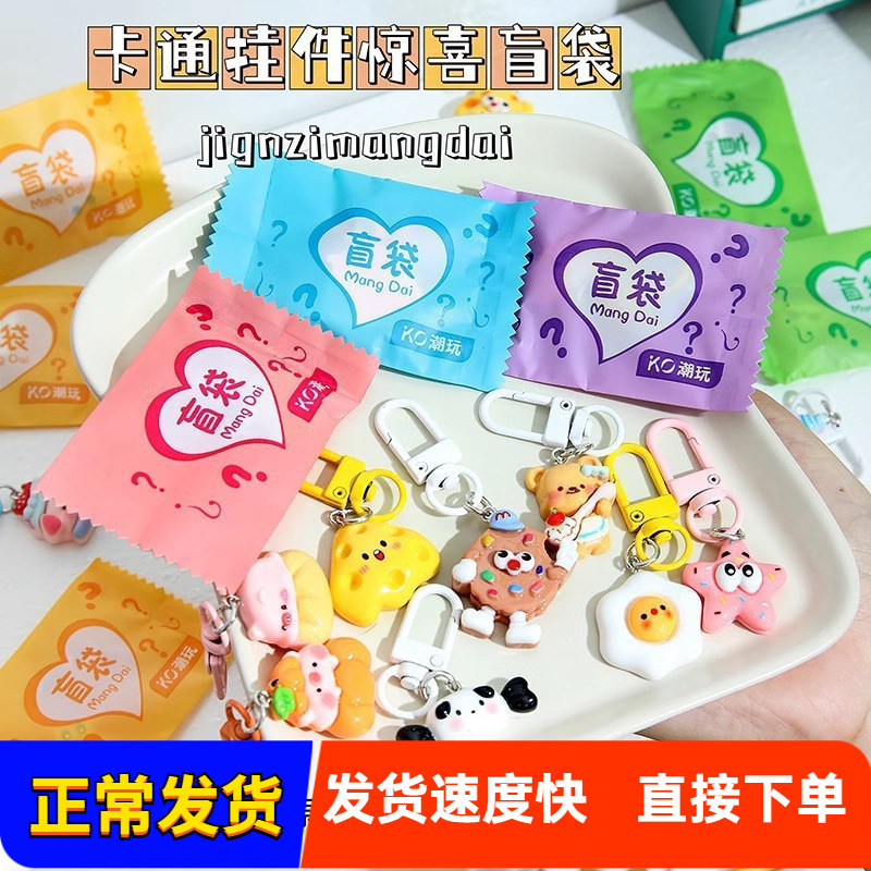 ブラインドバッグのキーホルダーが可愛い学生カバンに飾られています。