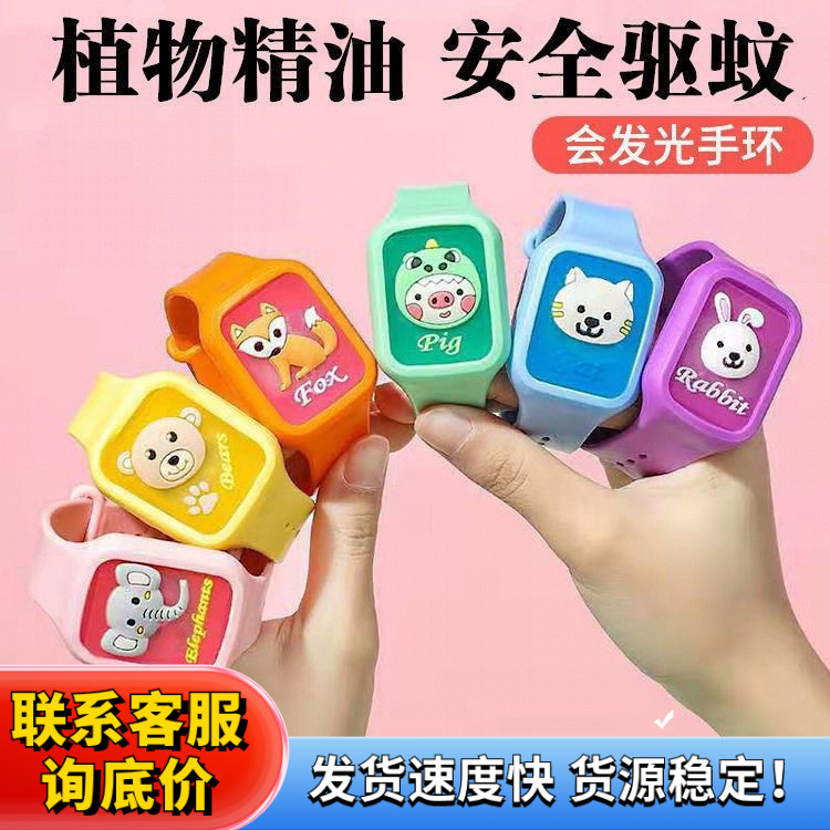 新型の四角い防護手環漫画誘導閃光腕時計子供の露店発光蚊のボタンの手環現物