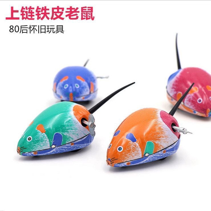 ブリキのネズミのカエルのレトロなレトロの経典の子供の赤ちゃんのぜんまいの上で鎖のおもちゃの幼稚園の贈り物の賞品に行きます。