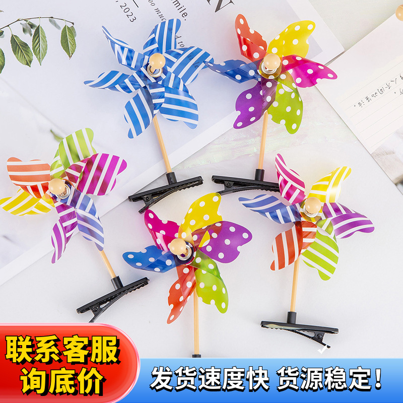 風車ヘアピン子供風車クリップ頭飾り屋台風車幼稚園のヘアピンが可愛いです。