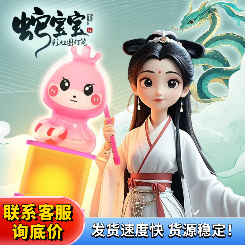 蛇の年の蛇の赤ちゃんは提灯を持って光る弾力の虹の輪のスプリングリングの夜市の元宵の七色の閃光の提灯を持ちます。