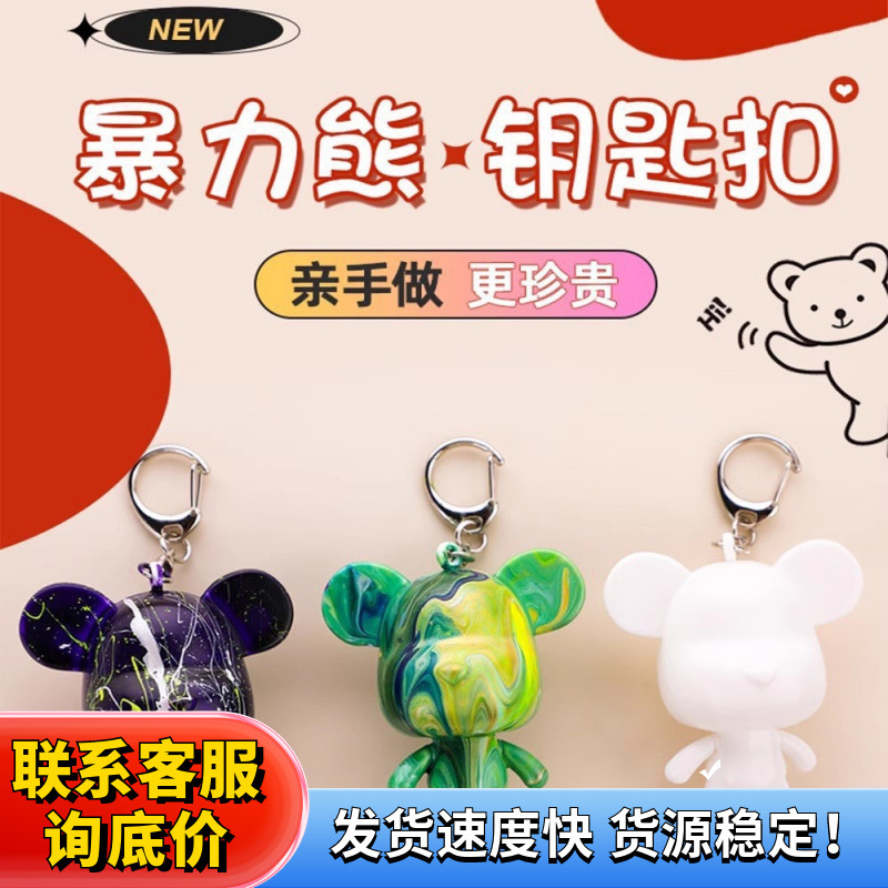 Diy材料バッグ流体暴力熊キーホルダー手作りペンダント白胚創意手作り流体熊シリーズ