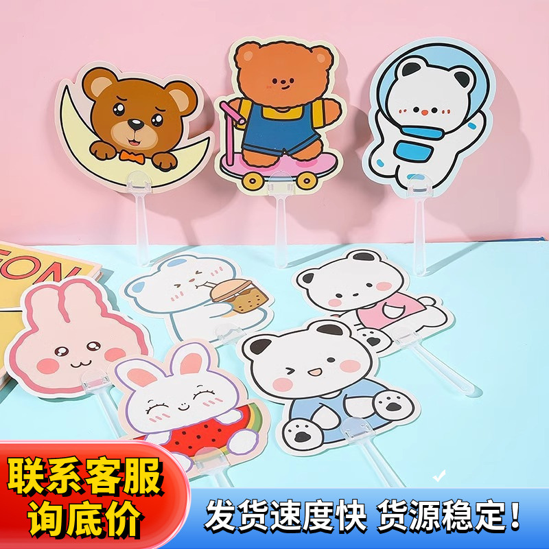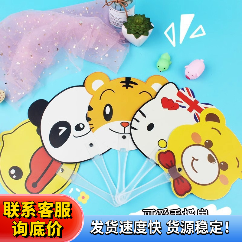 創意的な扇子の漫画の動物の子供は扇風機を持っています。