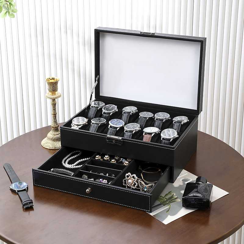 ダブル12ビット腕时计ジュエリー収纳ボックスPU开き窓透明アクセサリーボックスジュエリー収纳革ボックス