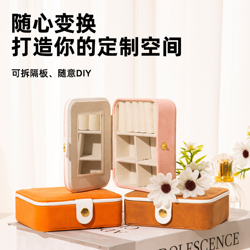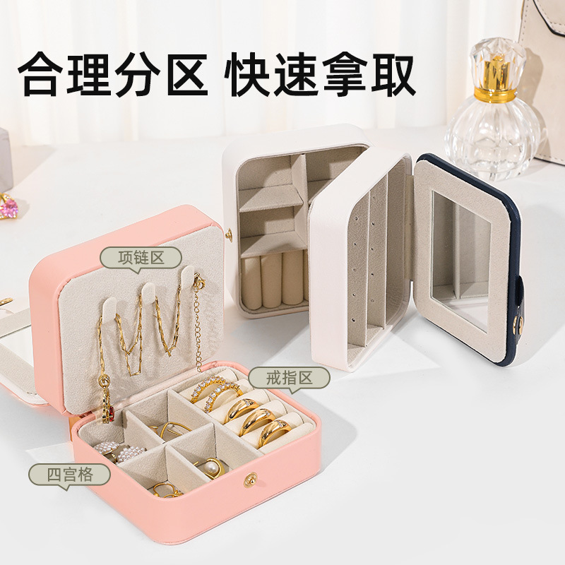 PUジュエリーボックス卸売ポータブルアクセサリー耳饰りネックレスジュエリーボックスジュエリーイヤリングリングPU収纳ボックス