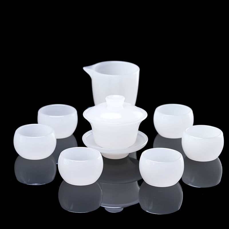 白玉瑠璃茶器セット玉磁器カップ家庭用工夫蓋碗事務室接客茶器ギフトボックス卸売り