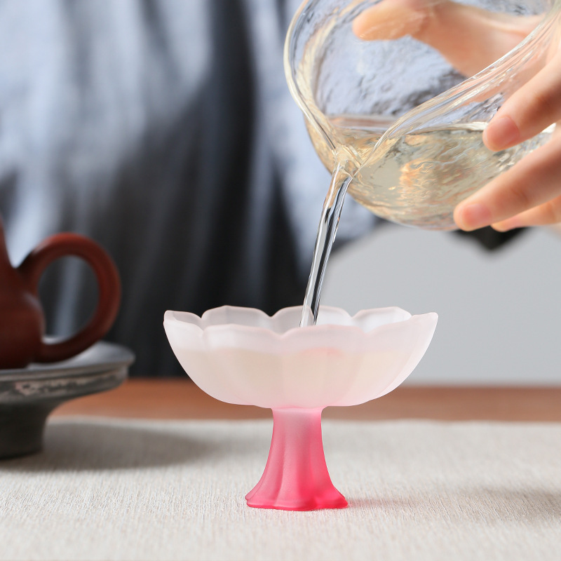 和風初雪グラデーションガラスカップ 上神杯 主人杯 品茶杯 女性用茶器 カンフー茶器セット 卸売