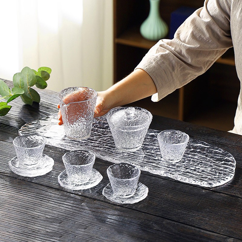 日本式の工夫の小さいお茶の杯のお茶の用品の茗杯の家庭用ガラスの公道の杯の蓋の碗の主人の杯の礼箱のセットは卸売りします。