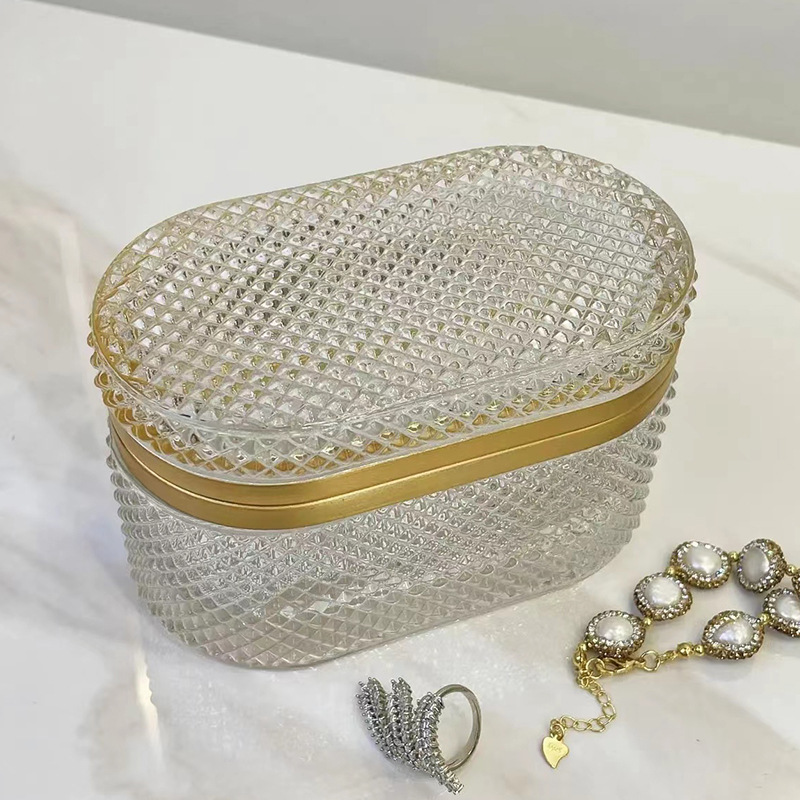 シンプルでモダンな透明ガラス製卓上収納ボックス、蓋付き防塵収納ディスプレイボックス、化粧綿やジュエリー収納用