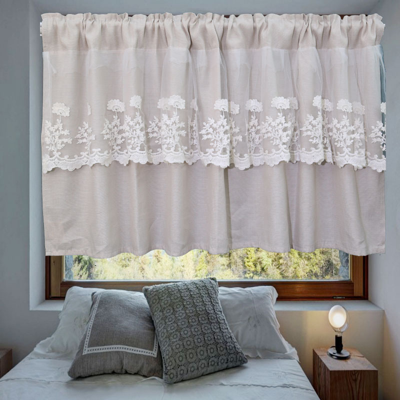 レースのハーフカーテンのカーテンはカーテンの鏡のカーテンを遮ります。