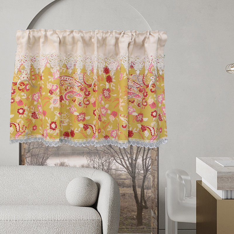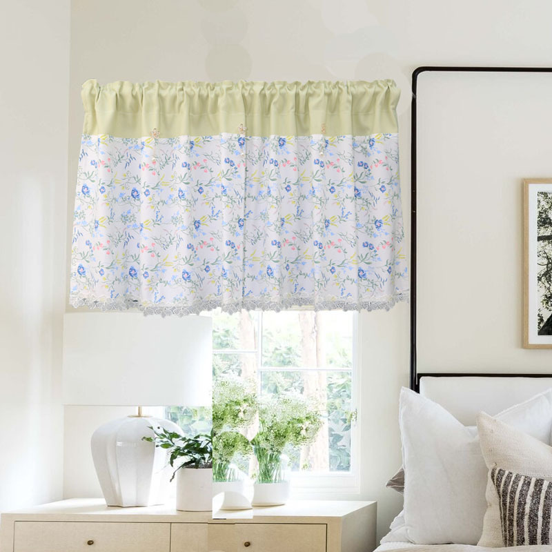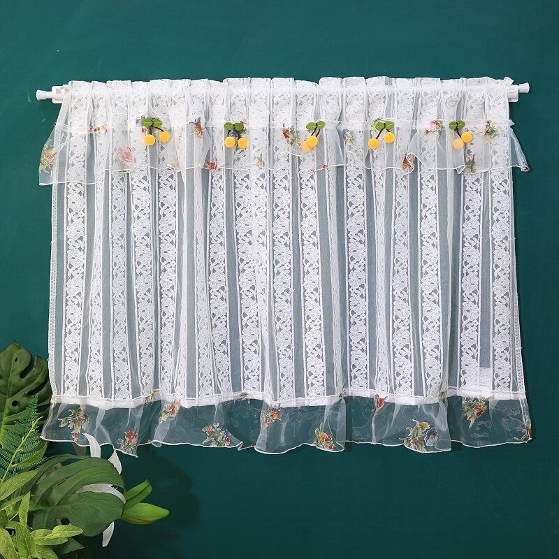小さいカーテンの棚のカーテンの刺繍はカーテンの穴を開けないで伸縮棒の子供の小さい窓の短い台所のトイレを取り付けます。