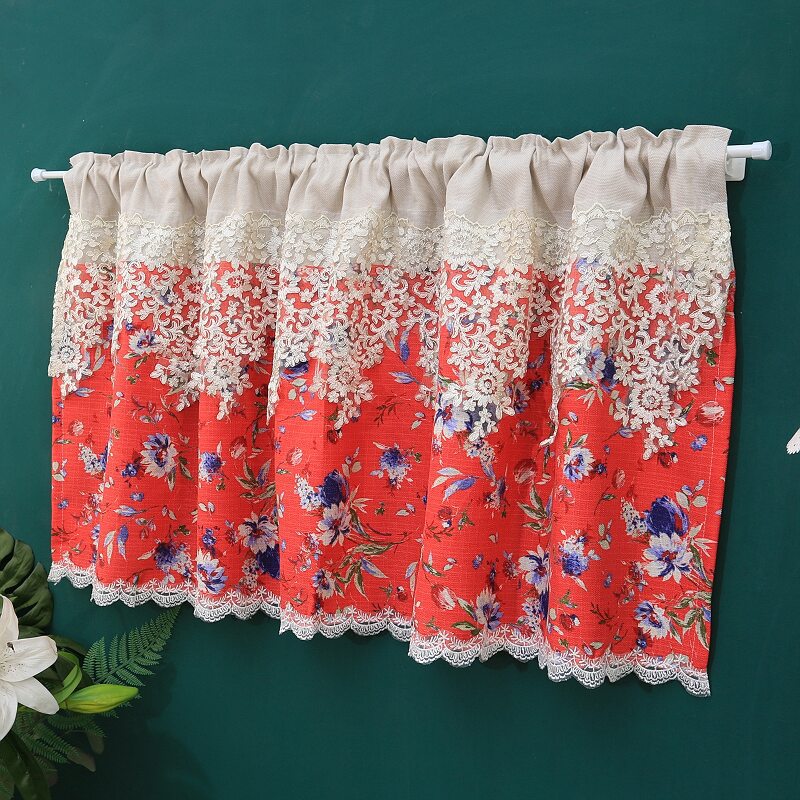 アメリカの田園のコーヒーのカーテンの半分のカーテンのキャビネットのカーテンの小さい短いカーテンの韓国式のレースのカーテンの花の縁の糸の刺繍のカーテンの頭