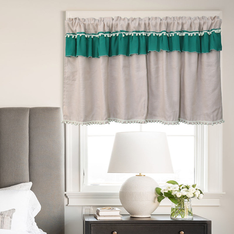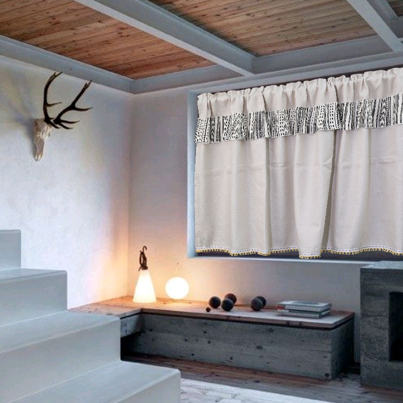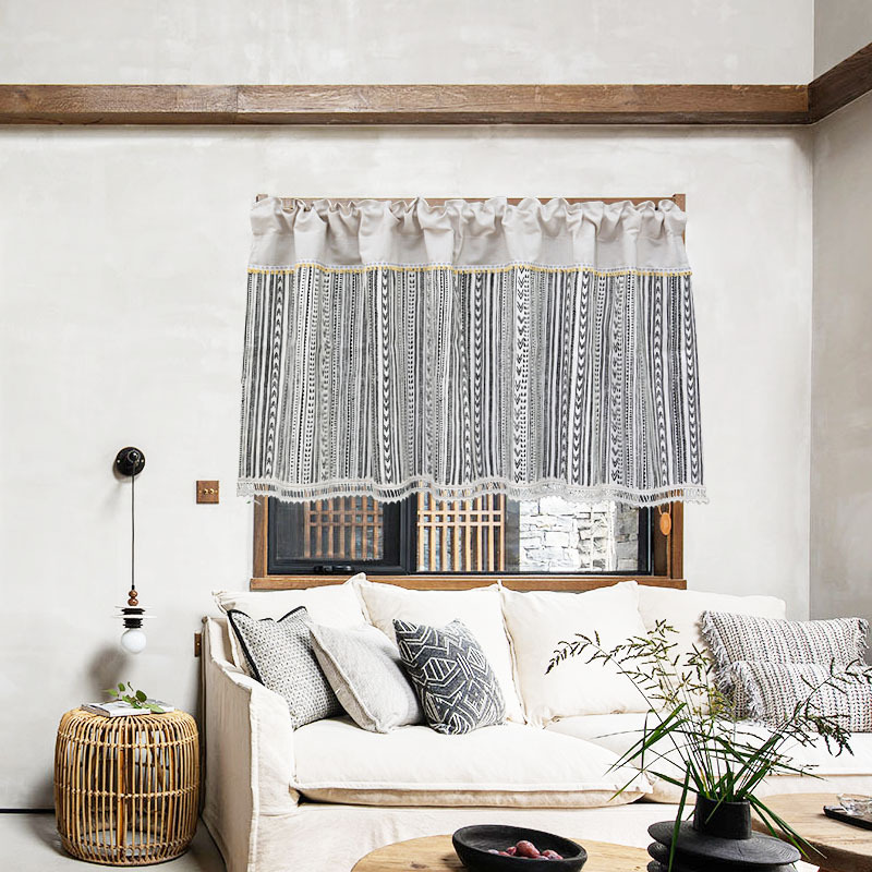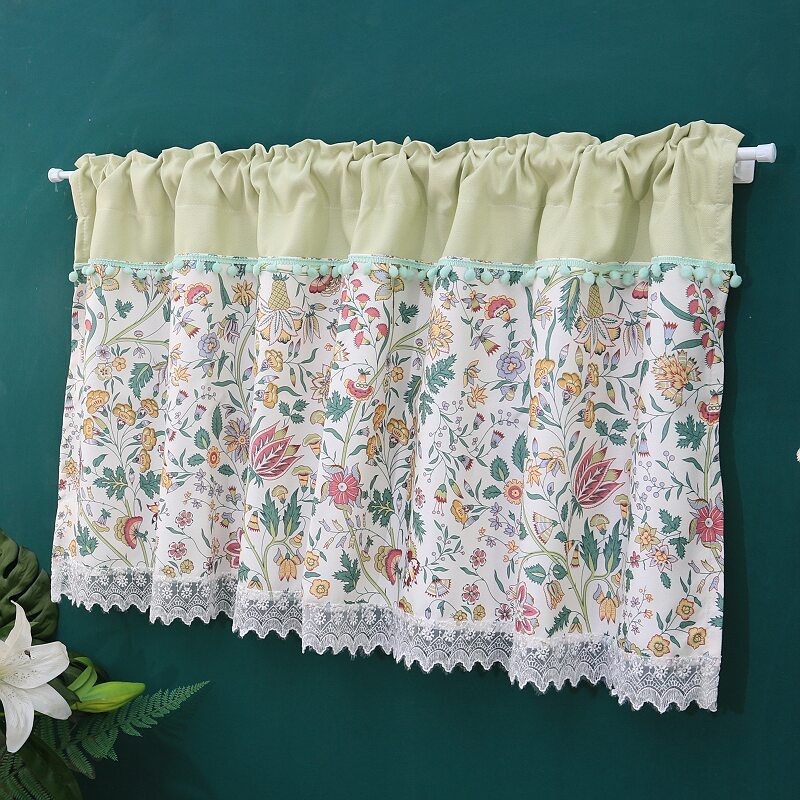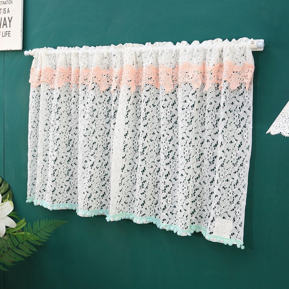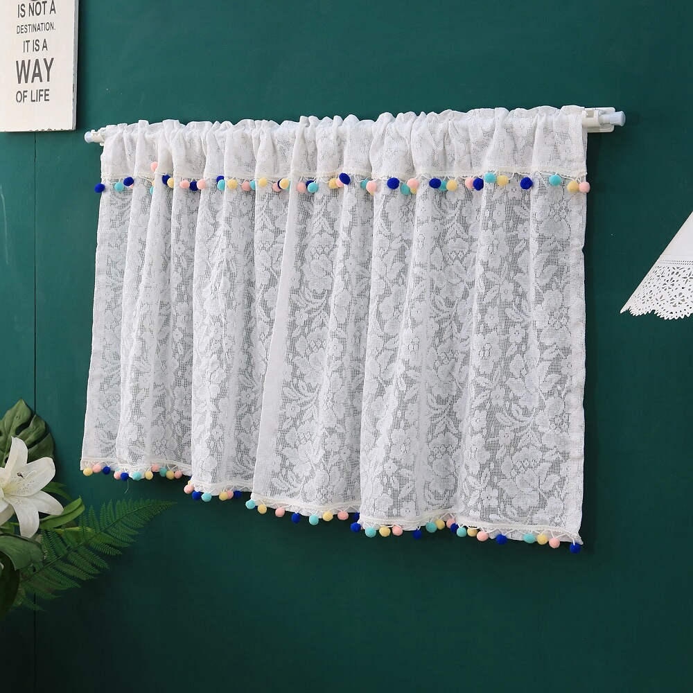 カーテン綿刺繍純色毛玉刺繍バラキッチンカーテン田舎風完成品窓フック寝室カーテン