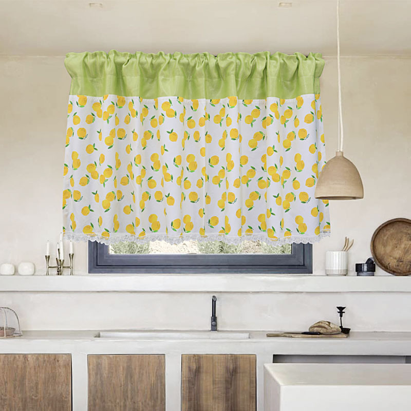 ダイニングルーム小さなカーテン穴なしハーフカーテン短いカーテンレモンキャビネットカーテン子供キッチン伸縮ポール小さな窓簡易カーテン